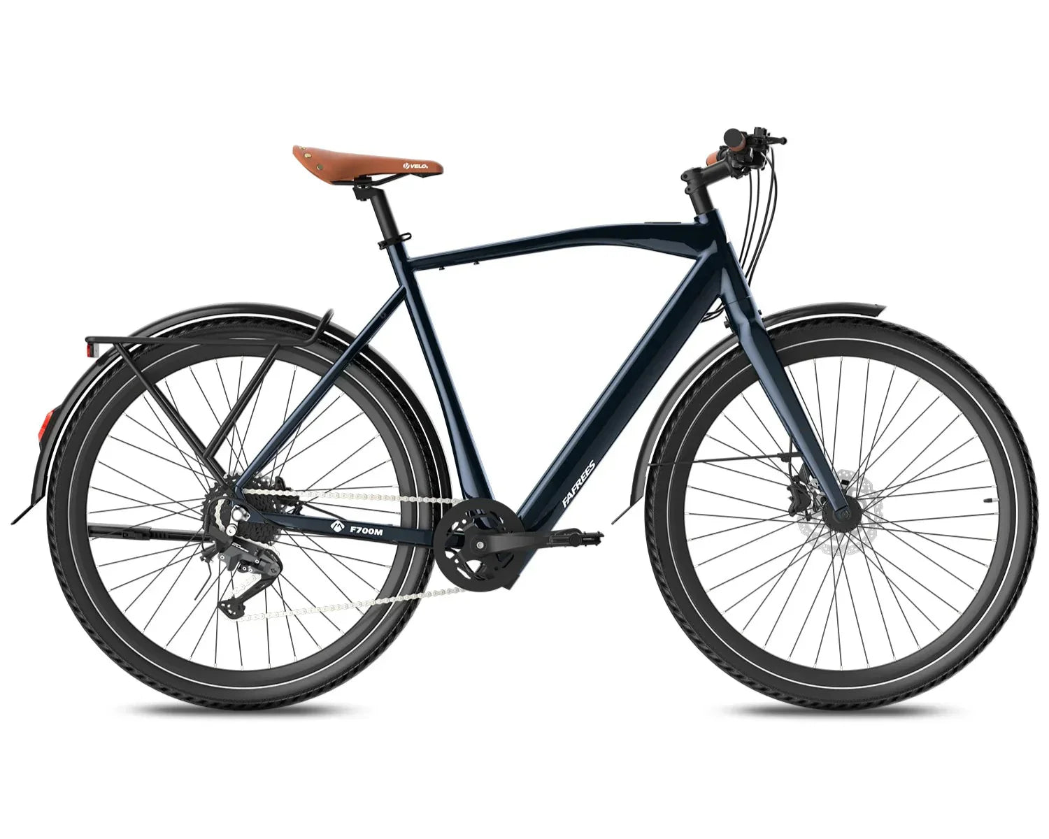 The frame of the F700M is made from aluminum alloy, which makes it both strong and lightweight. Aluminum is resistant to rust, meaning your bike will last longer and look great even after many rides. It also helps keep the bike stable, so you can enjoy safe and smooth cycling on different road surfaces.